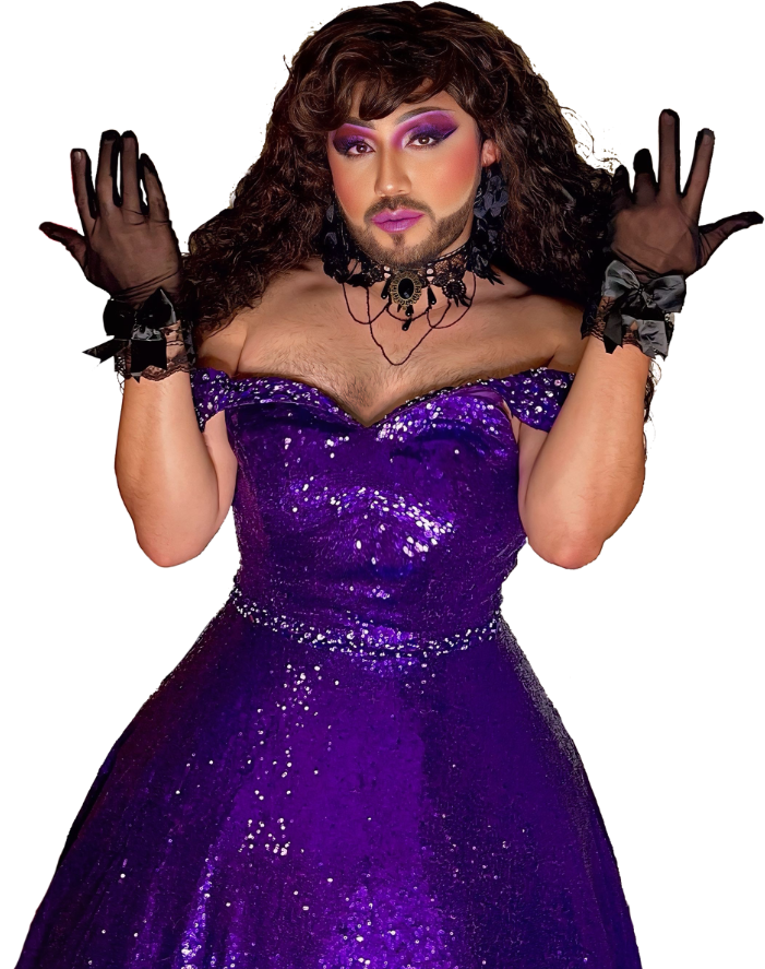 Born and raised in Texas (she still says “y’all”), Esmie didn’t start drag until moving to Denver. Her first spark? A Katy Perry concert that convinced her she could rock a wig with extra sequins. Alongside her sister, she’s grown from baby queen to show producer—still a baby, just a busier one. Acting since age eight, after an eight-year break she’s thrilled to be back onstage bringing chaos, charm, and heart to the show.